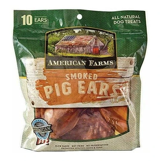 American Farms Pigs Ears are always baked – NEVER fried. Made from only American farm raised pork, we hand select each piece for the best quality and size. They’re all natural and don’t contain any artificial ingredients, added preservatives or coloring. Our pig ears are either oven roasted or naturally hardwood smoked for hours to bring out the most natural flavors your dog craves. They have a smooth texture, are easy to digest and are a natural source of protein and chondroitin – great for joints and overall health.