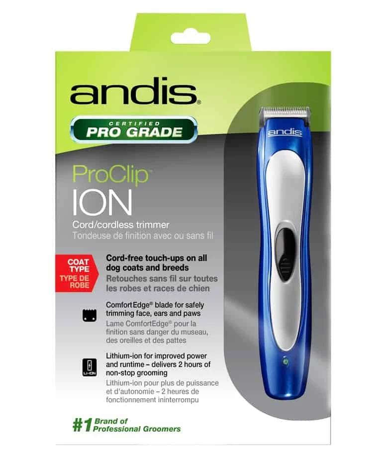 The Precise Trim Trimmer touches up around the face, ears and tail. Two hours of non-stop lithium-ion battery power and four attachment combs let you take off a little or a lot. Includes a blade brush, blade guard and dual volt charger.