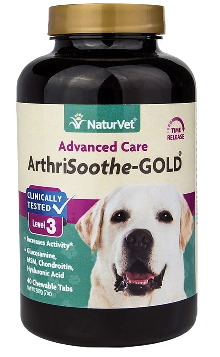 Improve joint mobility and reduce stiffness in your dog’s tissues with optimal levels of glucosamine, chondroitin, green lipped mussel, hyaluronic acid and MSM as formulated in ArthiSoothe -Gold. This clinically tested formula provides Glucosamine, MSM, Chondroitin, and Green Lipped Mussel to support connective tissue, cartilage health, joint movement, and lubrication of joints. Recommended for pets in need of advanced joint care, such as senior pets, those recovering from joint related injuries or surgery, or when the most support is needed.