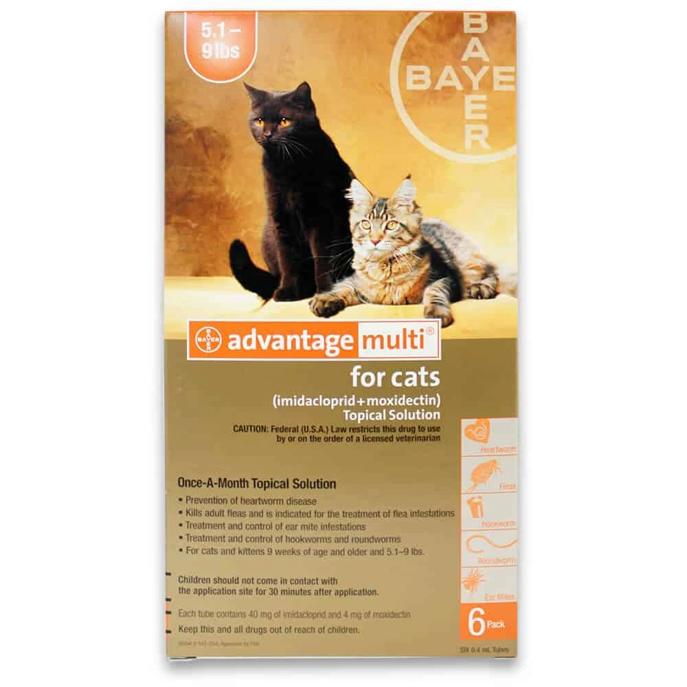 Advantage Multi for Cats is indicated for the prevention of heartworm disease caused by Dirofilaria Immitis in cats and ferrets 2 pounds or over. Advantage Multi for Cats kills adult fleas (Ctenocephalides felis) and is indicated for the treatment of flea infestations.
