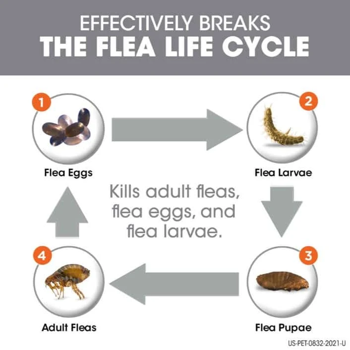 - Formulated with two active ingredients to help disrupt the flea life cycle and prevent new infestations.