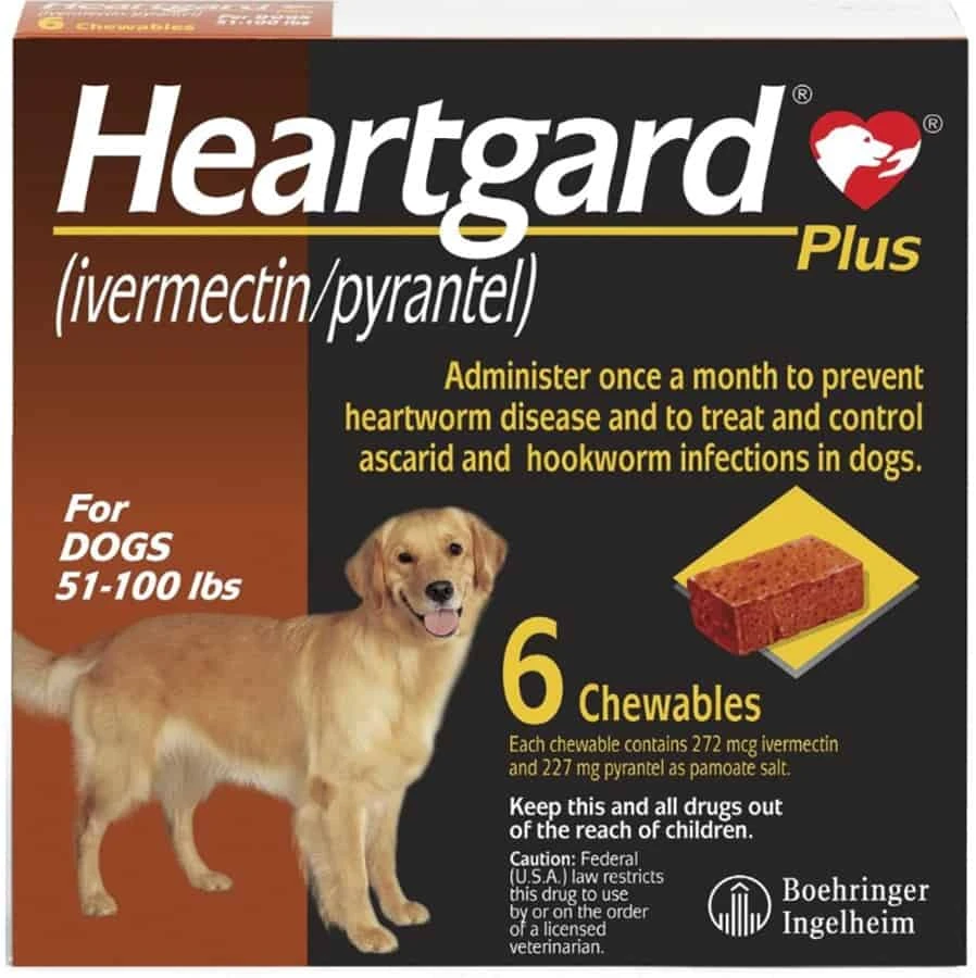 - Heartgard Plus is a real-beef soft-chew tablet for dogs that provides protection against heartworms, and treats and controls roundworms and hookworms. Heartgard Plus is given monthly and requires a prescription from your veterinarian. Heartgard Plus (ivermectin/pyrantel) Chewable Tablets contain two active ingredients, ivermectin and pyrantel, that work together to prevent heartworm disease and treat and control hookworms and roundworms. For dogs and puppies 6 weeks of age and older.