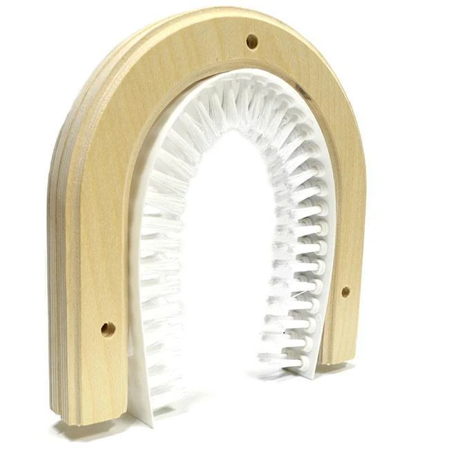 Give your cat their own private entrance to the cat box room with this wooden arched Cathole cat doorway. Litter box can be hidden in storeroom or closet and only the cat has access. Removeable soft bristle brush grooms them as they go in and out.