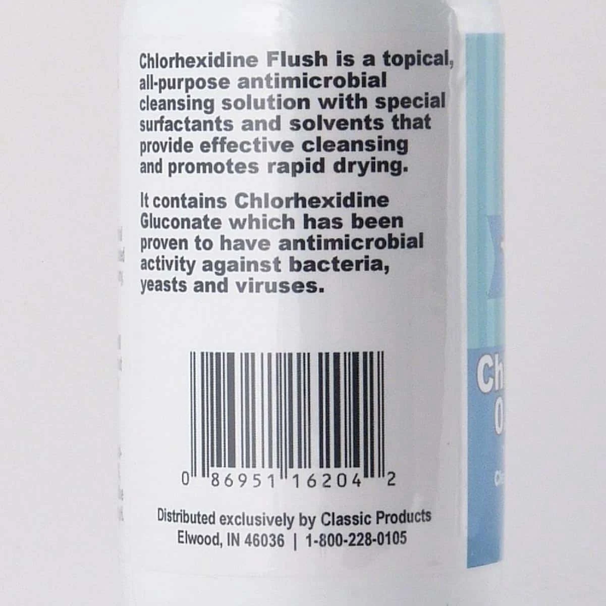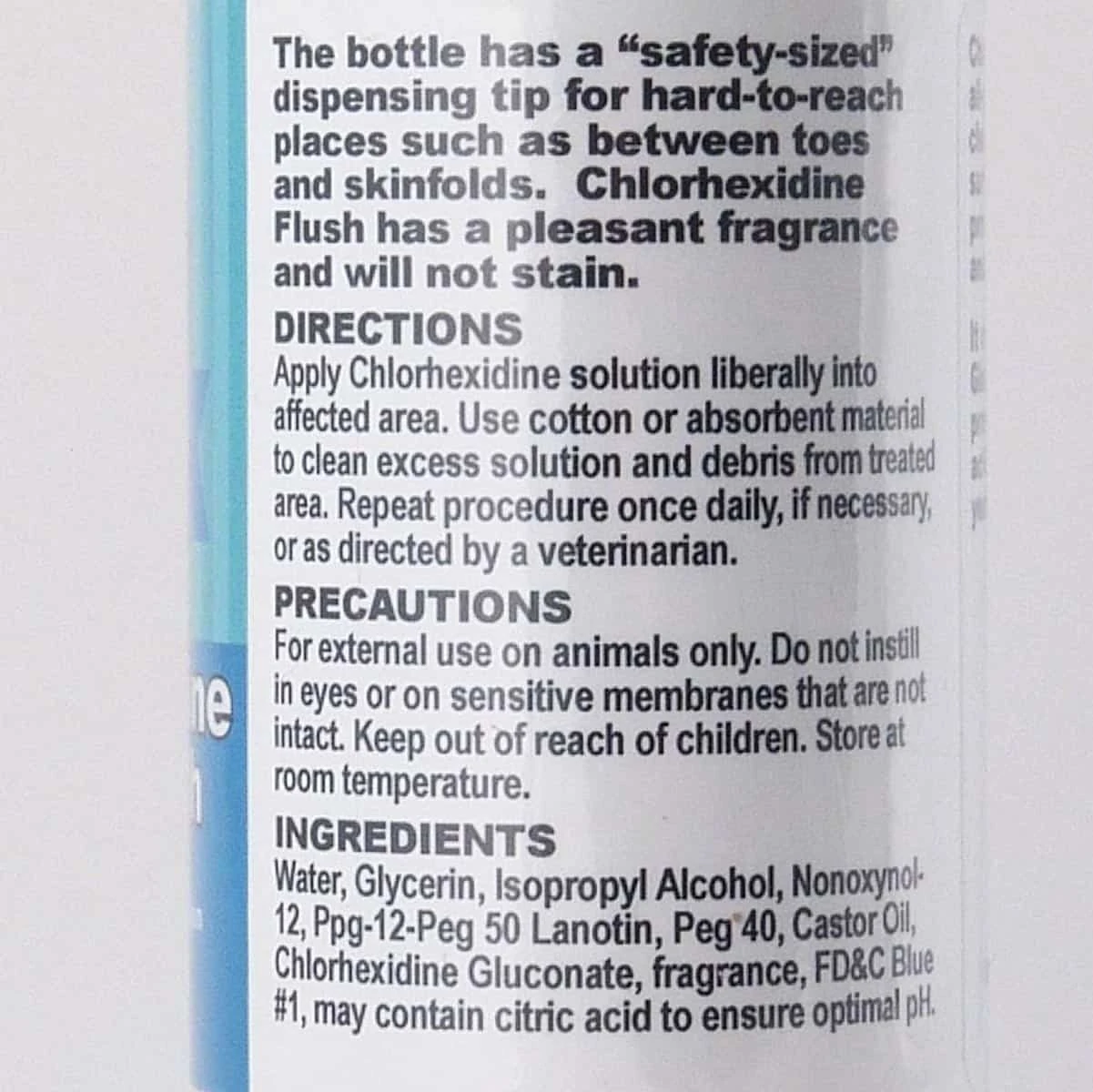 Chlorhexidine 0.2% Antimicrobial Cleansing and Drying Solution. For use on Dogs, Cats and Horses. VetOne® Chlorhexis® Flush is an astringent, general cleansing, drying formulation for topical use on dogs, cats and horses. Contains chlorhexidine gluconate in a soothing, solubilizing vehicle. For general cleansing of such conditions where an antimicrobial formulation would be of benefit.