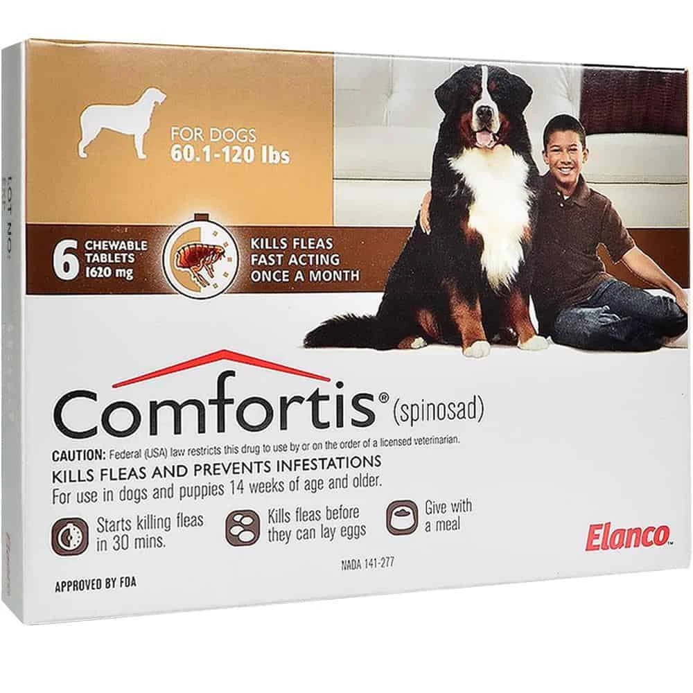 Comfortis is an FDA-approved chewable, beef-flavored tablet that kills fleas and prevents flea infestations on dogs and cats for a full month. Comfortis is: