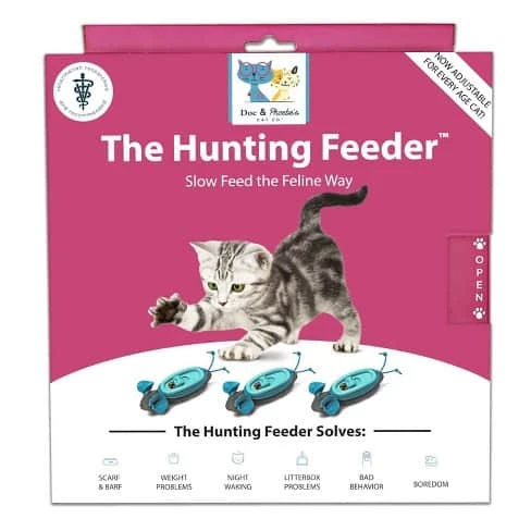Cats are great but we all know the many downsides – aggression, scarf and barf, night waking, etc. Bowl feeding causes these problems. A cat’s stomach is the size of a ping-pong ball – the size of a mouse. That’s no coincidence. In nature, cats spend 80% of their waking hours hunting for food. Cats need to hunt catch and play with multiple small meals day and night. Without it, they act out.
