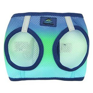 The Doggie Design Ombre Harness has a Best-Fit rotation adjustment that will fit any size chest, if applied correctly. The Velcro is designed to cover the entire end. The Best Fit occurs when you angle the closure back toward the Tail of the Dog. You can actually change the fit around the chest, by angling the ends when you close the Velcro. The 3 Inch Webbing allows for 3 Inches of size adjustment. The Double D-Ring adds additional strength and safety when attached to a leash. Also features walking reflective strips to keep your dog visible even in the dark.
