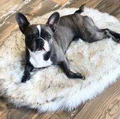 PupRug Mini Orthopedic Dog Bed White Fur W/ Brown Accents