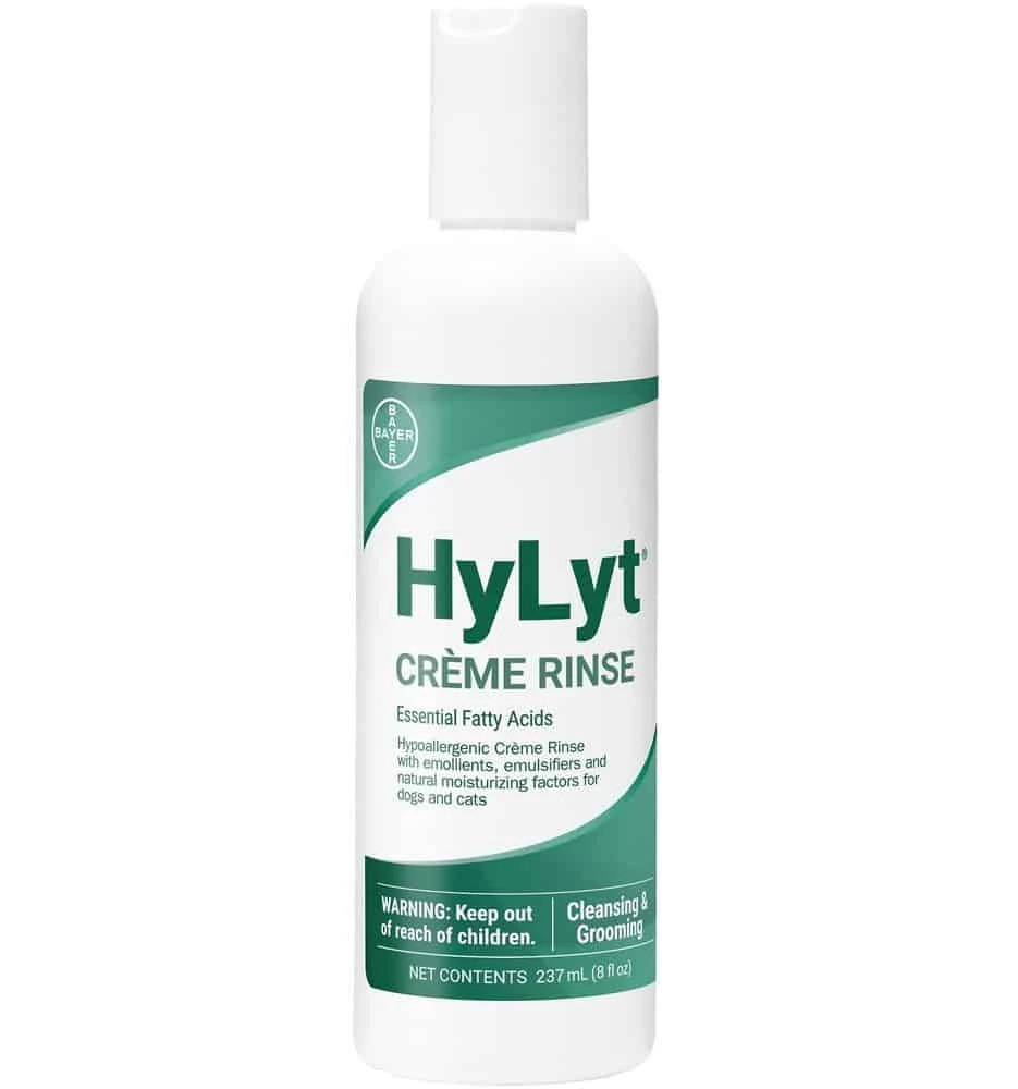 HyLyt Creme Rinse for Dogs & Cats is a luxurious and soap-free formula enhanced with essential fatty acids and containing emollients, humectants and other natural moisturizing factors to condition and hydrate the skin for dogs and cats. This rinse can be used as an after-bath creme to assist with the reduction of static electricity, tangles and snarls, so your pet’s coat stays healthy and smooth.
