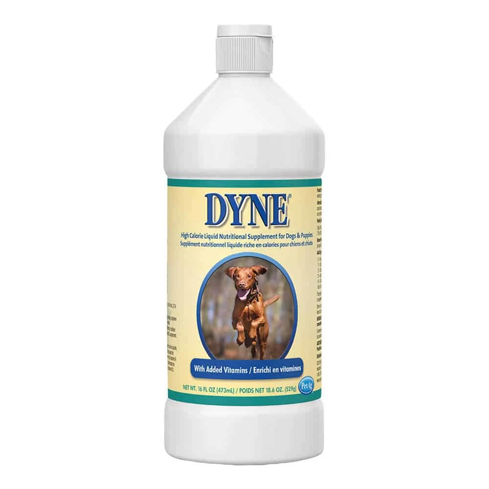 Dyne for dogs is a High Calorie Liquid Diet Supplement that provides your pet with maximum calories in a minimum volume. Dyne provides 185 calories per ounce, plus proteins and vitamins. As a supplement to other foods, it aids in weight gain or to help stressful conditions. Also provides extra energy and increases stamina for peak performance for hunting or working dogs, aids in nutrition for pregnant and lactating bitches, provides extra nutrition for puppies and helps speedup recovery from illness. The great vanilla flavor encourages even the pickiest eaters to eat. Dyne supplement can be top dressed, given with an oral feeding syringe, or mixed with water to help combat dehydration.
