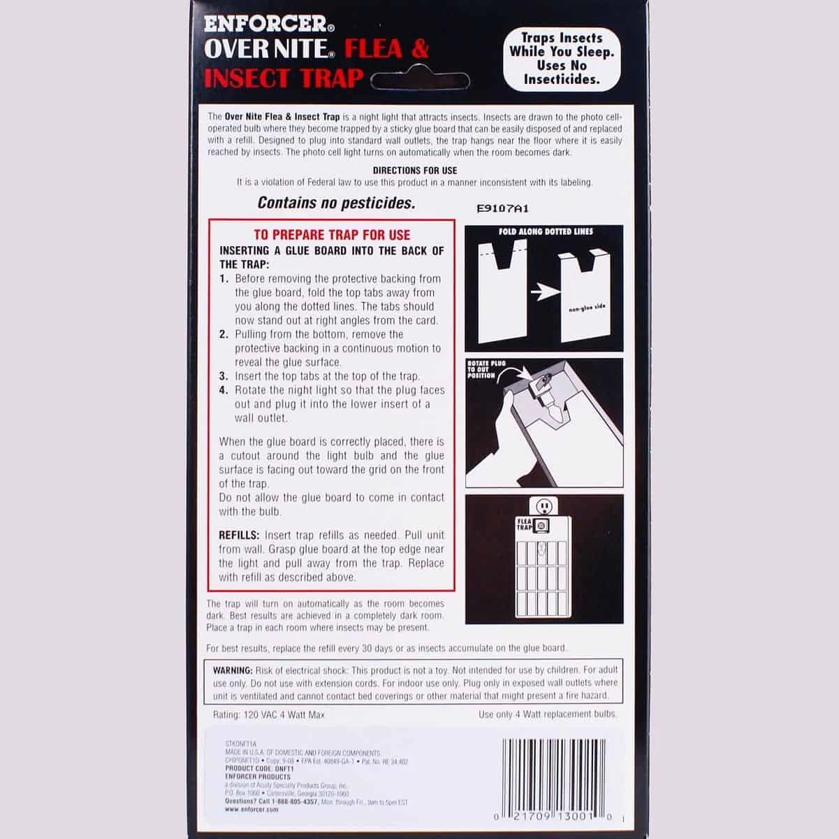 Traps fleas while you sleep. Night-light comes on when lights go out, attracting flying insects. Comes with a sticky adhesive surface, that once flying insects land, they can not go anywhere. Simply plugs into wall outlet. A great, and effective product, that will deliver results.