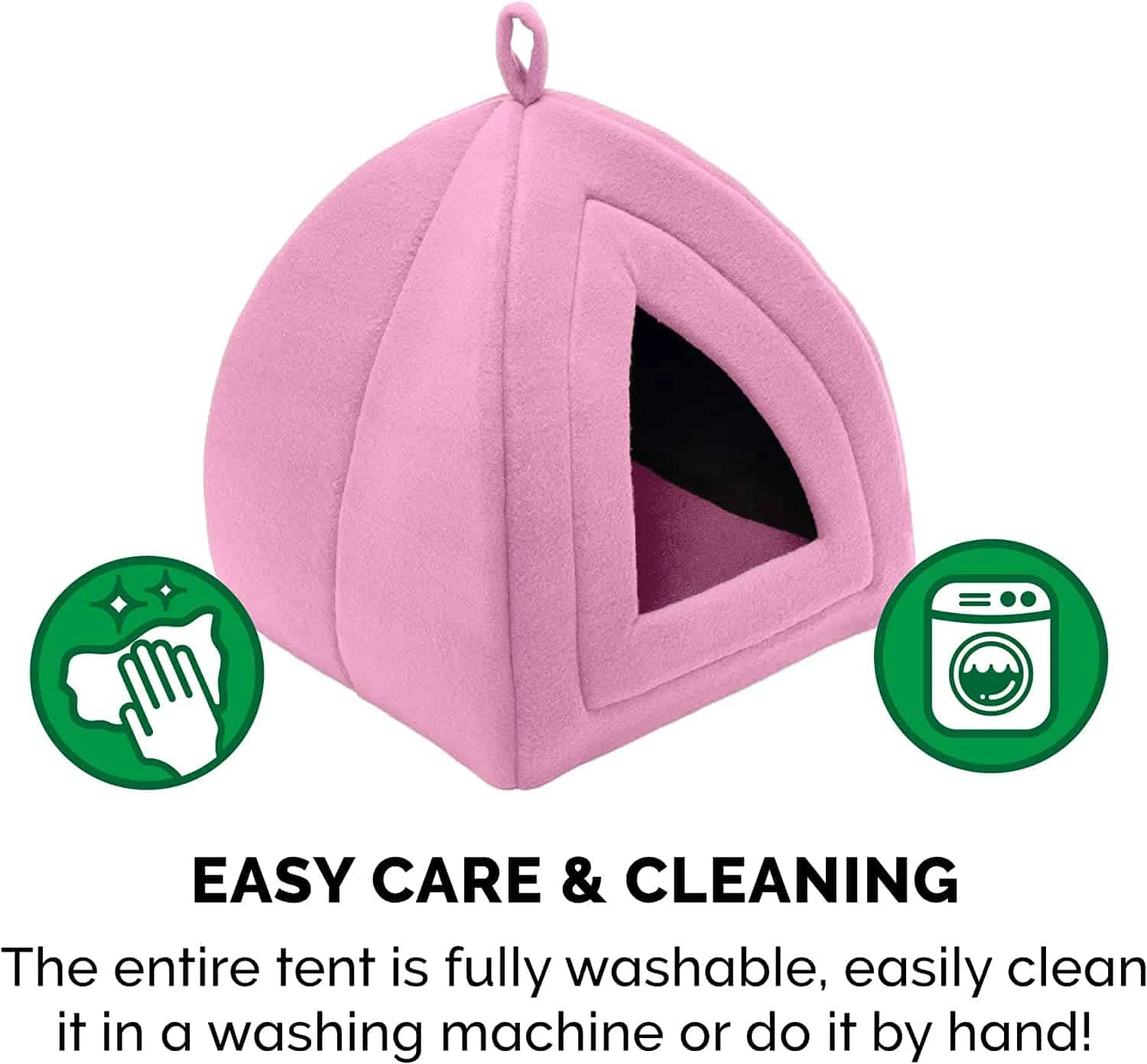 Cozy, insulating foam walls give cats and small dogs the privacy and warmth they crave. The simple tent-style bed helps anxious pets feel safe while they watch the world go by. Made of warm polar fleece fabric in easy-care 100% polyester. The base pad is removable for more frequent cleaning. 100% washable.