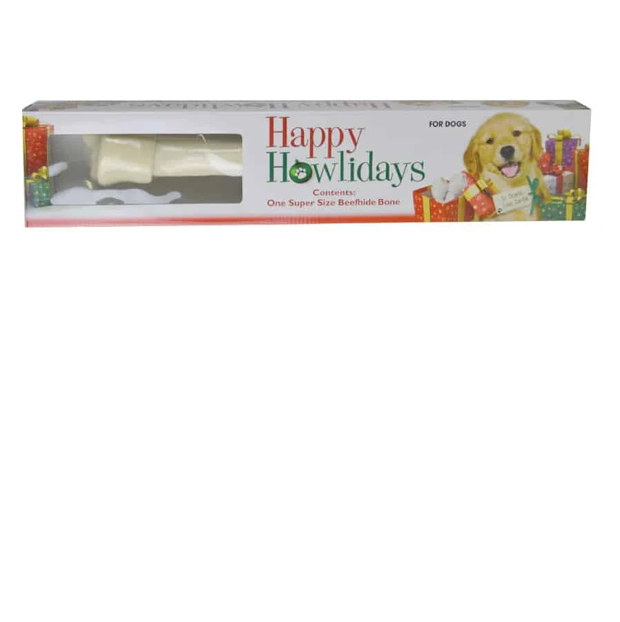 Pet Factory Holiday rawhide chews are handmade from quality beef cattle. Long lasting and full of flavor. Helps promote great oral hygiene by removing tartar and plaque.