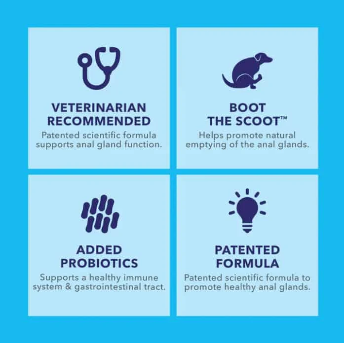 Glandex works in multiple ways from the inside out to keep the anal glands healthy. Glandex’s patented formula uses a unique fiber blend to support bulky and firm stools to assist the natural emptying of the anal glands every time your pet defecates. Other key ingredients including omega fatty acids also help support a healthy inflammatory response and maintain normal histamine levels in pets with seasonal allergies. Glandex also contains probiotics and digestive enzymes to support a healthy digestive tract, which in turn supports healthy anal gland function.
