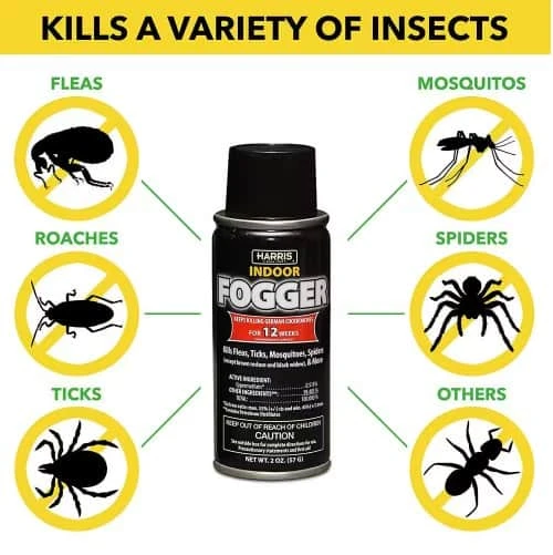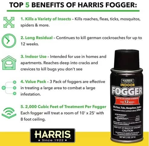 Harris Indoor Fogger release a room fog to kill roaches, fleas, ticks, mosquitos, spiders & many more listed insects. Featuring a long residual that continues to kill German cockroaches for up to 12 weeks. Reaches deep into cracks and crevices to kill bugs you don’t see. 3 Pack of foggers are effective in treating a large area to combat a large infestation. 2,000 Cubic Feet of Treatment Per Fogger – Each fogger will treat a room of 10′ x 25′ with 8 foot ceiling. Must follow label directions carefully. Not for small enclosed spaces.