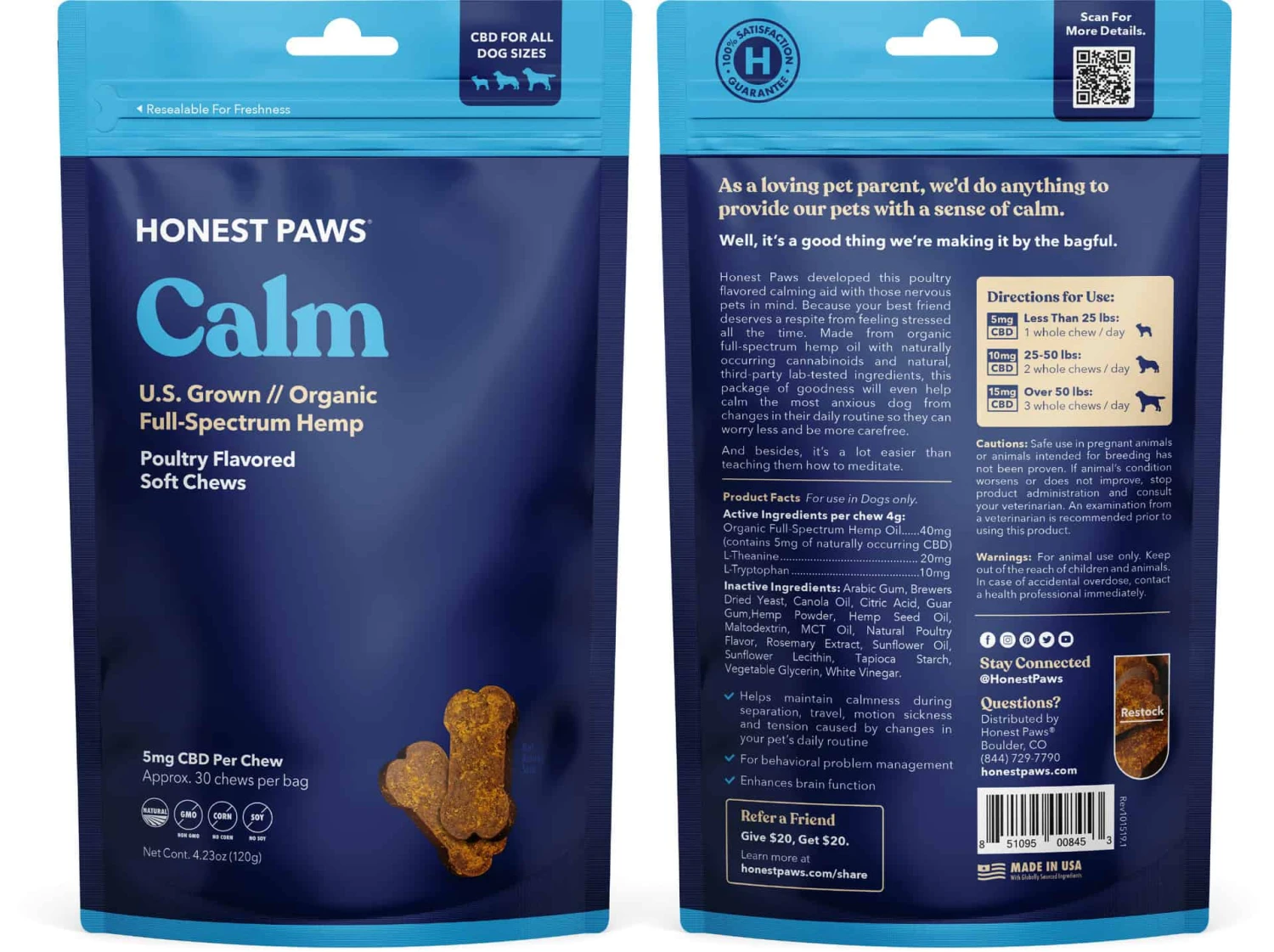 Nightmares, panting and panting, or barking all the time are all warning signs that our dog is troubled by a past experience. And whether it’s traveling, moving to a new home, new neighbors, loud noises, or being left alone for too long, there are all sorts of things that can set our pets off. The good news is that Honest Paws Calm Soft Chews can help settle your furry friend’s nerves in as little as one hour. They can also help to address unruly behavior and support healthy brain function, all while your pup enjoys the tasty, poultry flavor.