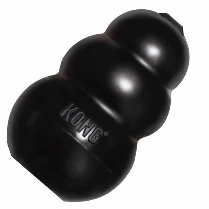 The KONG Extreme dog toy represents the most durable strength of KONG rubber. Designed for the toughest of chewers, the KONG Extreme offers enrichment and helps satisfy dogs’ instinctual needs. The KONG unique, ultra-durable, natural rubber formula is designed for determined chewers, while the erratic bounce fulfills a dog’s need to play. Want to extend play time? Be sure to stuff with tempting bits of kibble and entice with a dash of peanut butter. Add to the fun by adding KONG Snacks and top with KONG Easy Treat. Stuff and Freeze for a longer-lasting challenge.