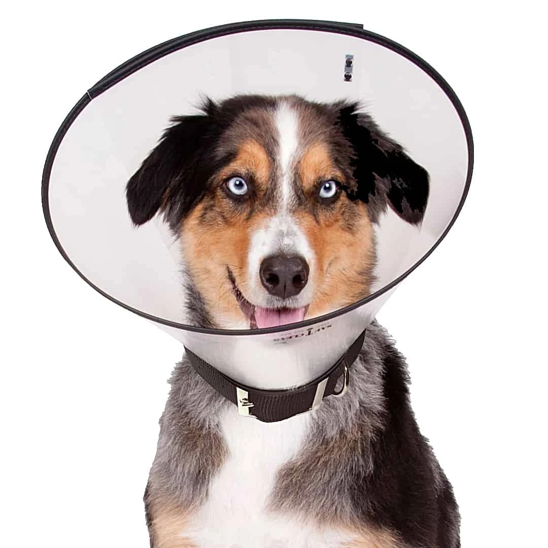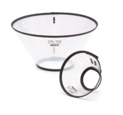 Clear, lightweight material provides full visibility for less stress adapting to the restraint. Dual padding at the neck, plus up to 9 neck-circumference adjustment points ensure fast, correct and comfortable fit. Cushioned outer rim protects walls, furniture, and shins.