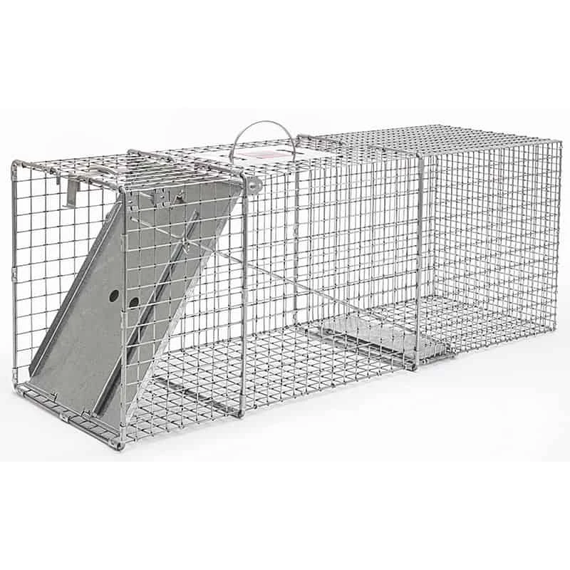 MEDIUM Live Animal Trap – Single Door Ideal for Raccoons, Porcupines, foxes, etc. Heavy-Duty galvanized wire mesh with steel reinforcement. Spring-loaded door, protected handle and automatic locking system provide safety for both animal and human.