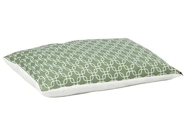 The QuietTime® Defender™ Rectangle Polyfill Pillow features a removable bed cover with Teflon™ fabric protector for long use. This is an ideal dog bed for medium dog breeds. The dog bed’s comfortable over-stuffed design retains its shape and reduces pressure on your dog’s joints and muscles. Each bed features a zippered, easy-to-remove cover that is protected with Teflon™ fabric protector which repels liquids, oils, and other stains for long use. In the event of an accident, simply unzip the dog bed cover and place the pet bed in your washer & dryer. The poly-fiber is also enclosed in a pet bed cover (inside of the outer cover) and will not make a mess when washing the outer cover of the dog bed. Ships in assorted patterns and colors: gray, green or brown