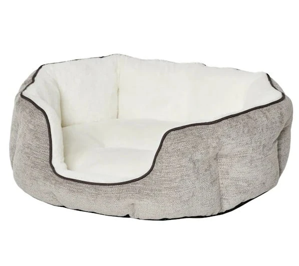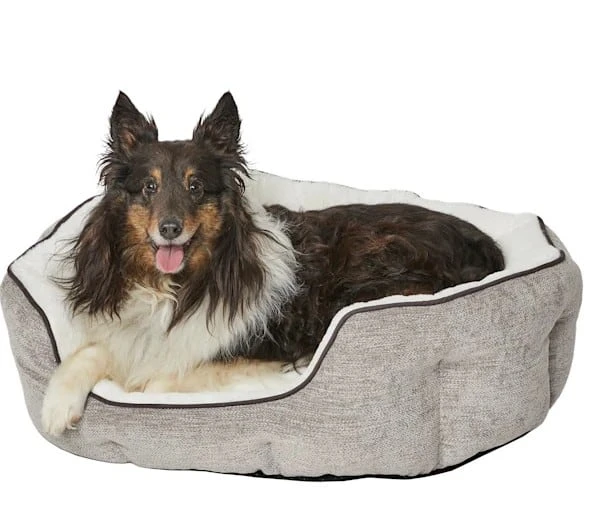 - – Nesting pet bed has a stylish gray bolster & tan inner cushion
