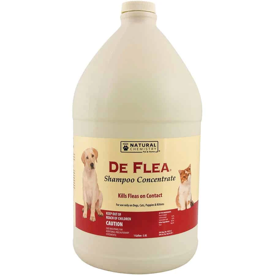 Non-irritating shampoo concentrate. Mix 3 parts water to 1 shampoo. Safe for kittens and puppies. All natural, kills fleas, ticks, mites and lice, without harsh chemicals. Bio-degradable. DeFlea is Environmentally friendly.