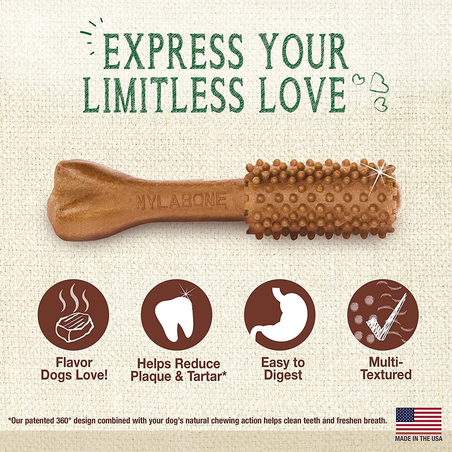 Cleaning your dog’s teeth takes commitment. Why not let him help? Our Nutri Dent Limited Ingredients Dental Chew Treats naturally freshen your dog’s breath and clean his teeth with 360 degree scrubbing nubs and only 8 simple ingredients. They are easy to digest, promote your dog’s wellbeing with natural ingredients, and contain no artificial colors, flavors, or preservatives. They clean like a brush and taste like a treat!