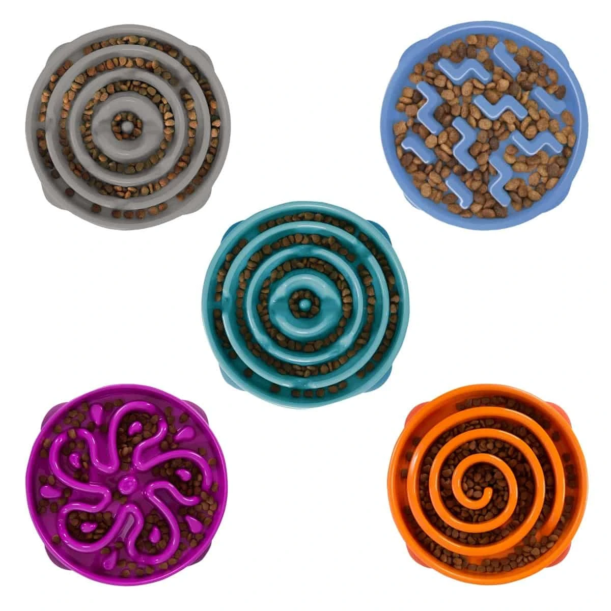 The Fun Feeder Slo Bowl dog bowls feature meal-lengthening ridges and multiple challenging mazes. Fun Feeder Slo Bowls keep pups engaged for up to 10x longer during mealtimes, which helps improve overall digestion while helping furry friends adapt to a healthier pace!