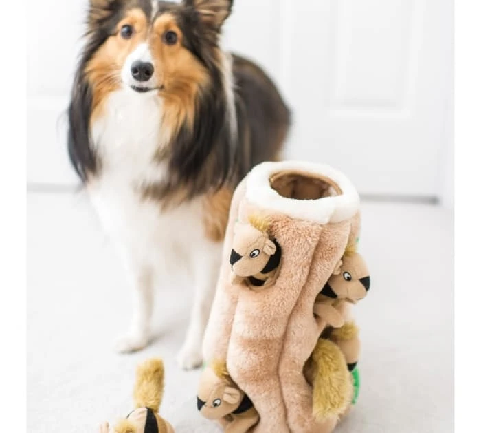 - HIDE & SQUEAK FUN: Fill the Hide A Squirrel dog activity puzzle tree trunk with Squirrel stuffed dog toys and let your dog sniff, hunt and fetch them.