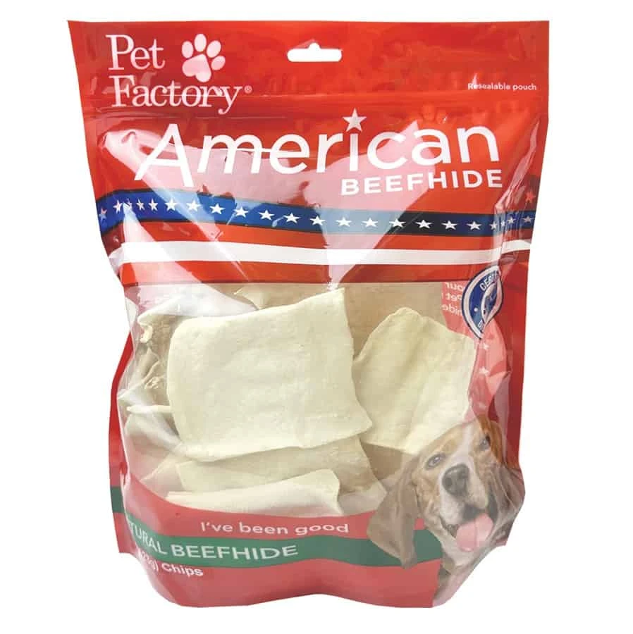 Pet Factory’s natural American beefhide chips are made from premium quality hides that helps keep your dogs teeth and gums healthy and clean.