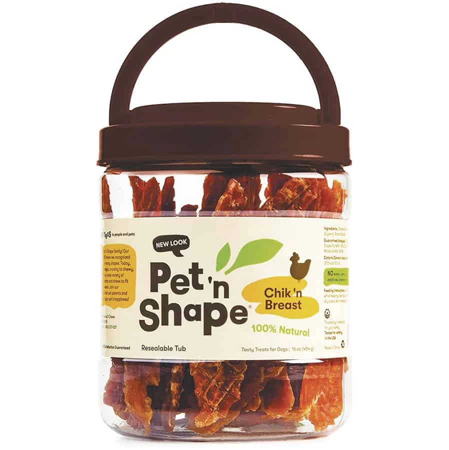 A true fan favorite, Pet ‘n Shape Chik ‘n Breast Jerky is made with real, all-natural dehydrated chicken breast fillets. These low-fat treats provide a healthy serving of protein and are an ideal delicious and chewy snack for dogs of all sizes.