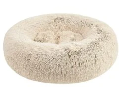 - Soft faux shag fur keeps your furry friend warm and cozy on cold nights. Water-resistant nylon bottom keeps your floors safe in case of an accident. Extra filling provides relief from joint and muscle pain. Round-shape is paw-sitively purr-fect for pets who like to curl up and snuggle. Raised edges are perfect for burrowing, offer additional orthopedic support and serve as a comfortable headrest. Orthopedic dog and cat bed is machine washable and dryer-safe for every pet parent’s convenience.