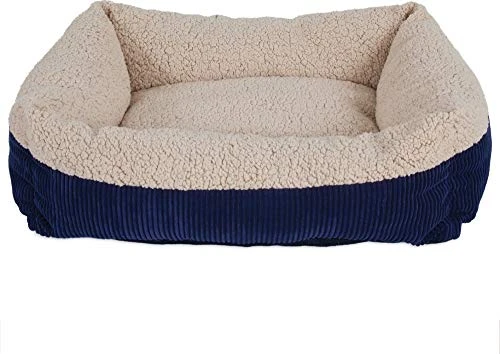 Utilizing the same heat-reflecting technology found in Mylar space blankets, the Aspen Pet® Self-Warming Rectangular Lounger is lined with a layer of material that generates warmth by reflecting your pet’s body heat and radiates back the warmth to the source. Covered with soft, faux lambswool plush and wide wale corduroy fabrics for added comfort and warmth. Each bed comes with a non-skid bottom that provides stability to keep it from slipping around. This is not an electric bed. No plug or electricity is needed. For the cleaning machine wash separately with cool water and mild detergent. Fluff Dry. Ships in assorted colors, dark red or navy.