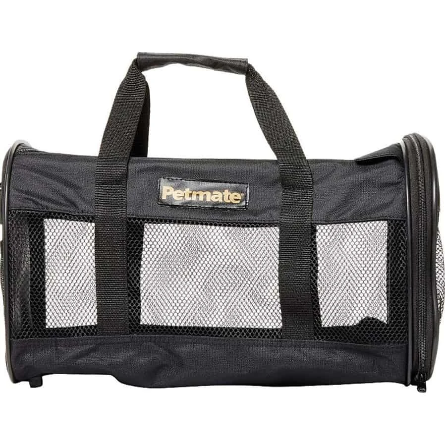 Carry your pet about in style and safety. Extra wide top entry and mesh panels for ventilation and viewing all supported by a padded shoulder strap. Comes with a convenient storage pocket and ID tag. Great for airline travel, fits under seat.