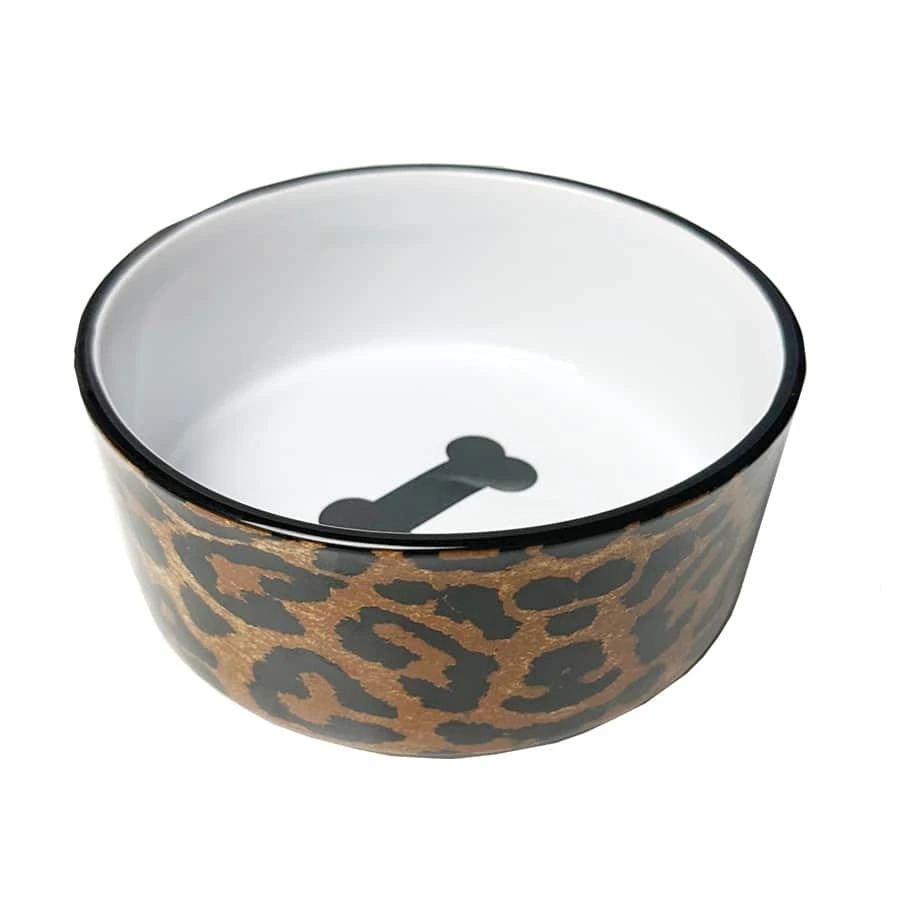 This modern stoneware bowl features a trendy leopard print design with soft edges. Heavy sturdy design ensures the bowl will stay in place. Holds 3.5 cups. Appropriate for dogs at 3″ tall x 5″ wide.