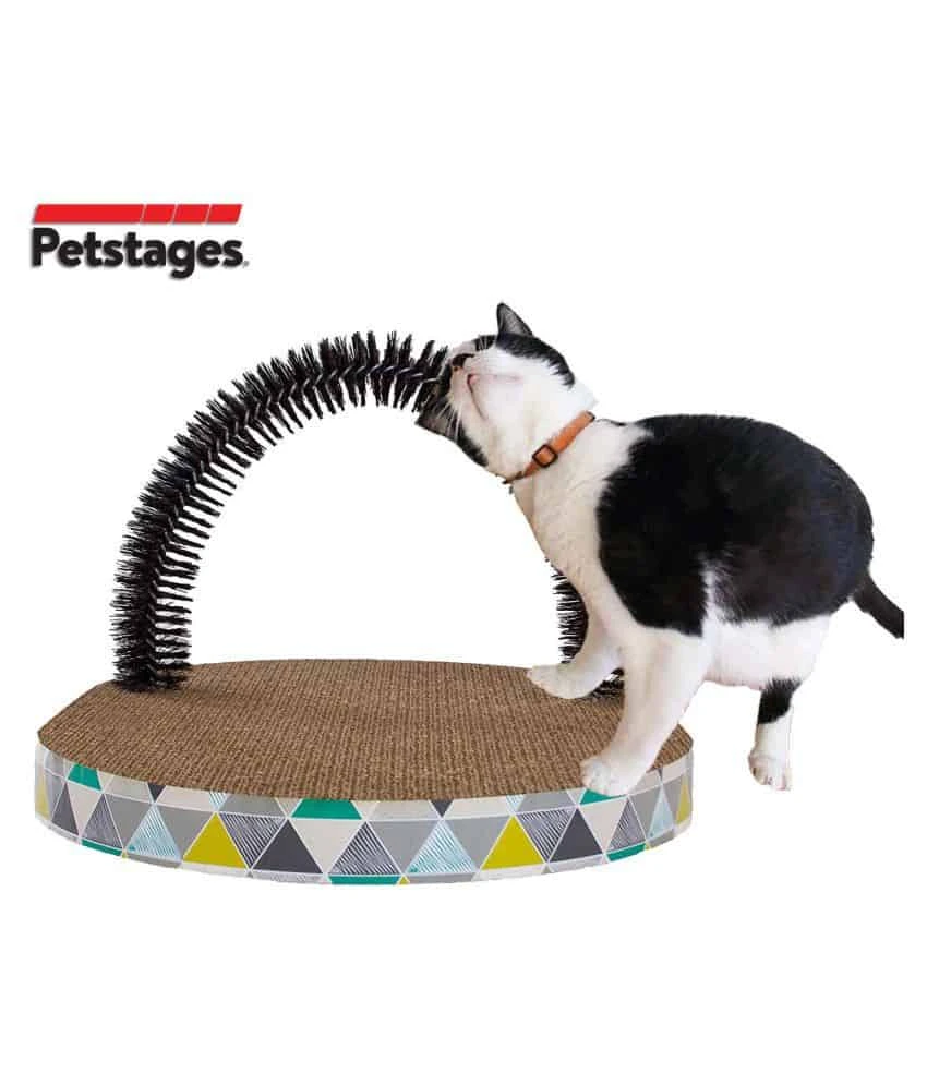 The Petstages Scratch & Groom set is the perfect self-grooming scratcher for owners and cats! Designed with high-density corrugated cardboard for the scratcher pad and an arched bristle brush for removing loose fur and providing a gentle massage for your kitty. Great for reducing the amount of fur and tear marks on your furniture by redirecting destructive behavior in a positive way. Blasted with dry catnip, this scratcher is a tempting invitation fo your kitty to relieve their natural instincts!