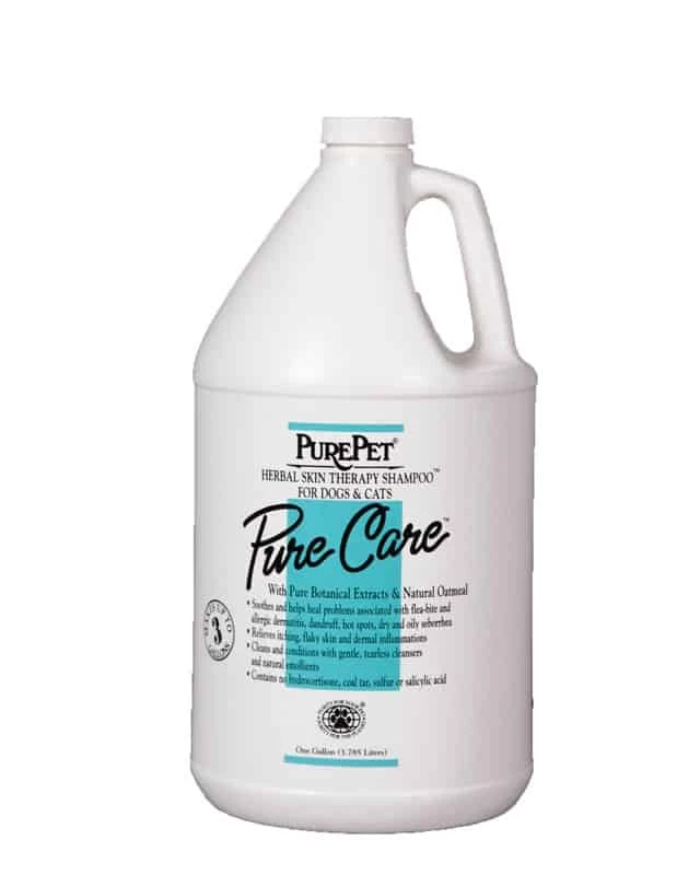 For sensitive pets or pets with severe allergies, there is no better solution than Pure Care. Our exclusive formula uses pure plant extracts, natural oatmeal, and sweet almond oil to relieve itching, flaky skin, and dermal inflammations. An excellent shampoo for dogs, cat, puppies, and kittens, Pure Care cleans and conditions with gentle, tearless cleansers and natural emollients, soothing and healing problems associated with flea bites, dermatitis, dandruff, hot spots, and dry and oily seborrhea. The bitter taste also discourages chewing and biting to speed the healing process.