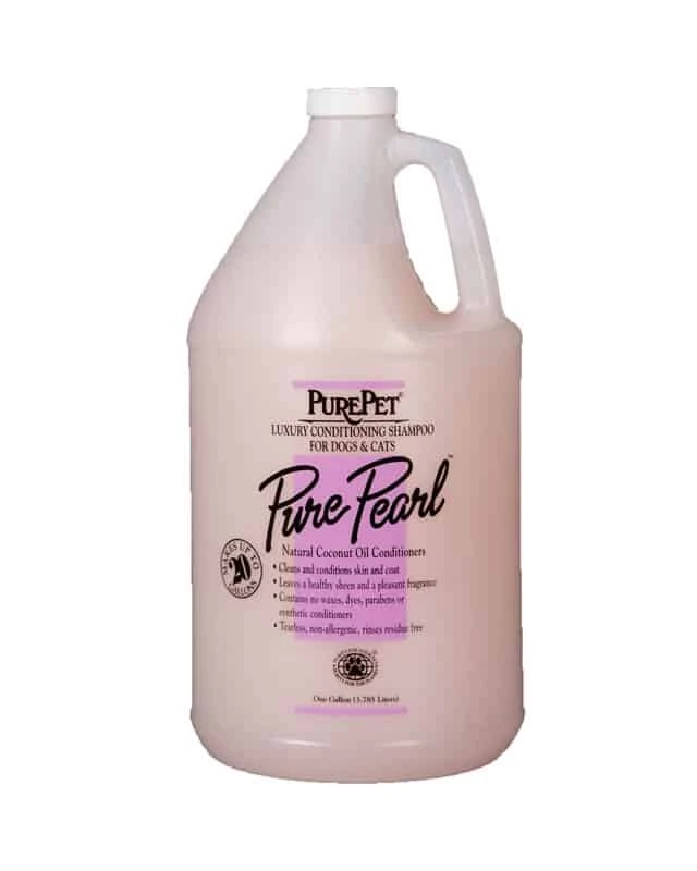 For canine and feline friends with sensitive skin, use Pure Pearl. This rich, pearlescent shampoo contains only the finest coconut oil, a natural ingredient recognized by veterinarians as the best conditioner for dogs, cats, puppies, and kittens. It does not contain synthetic conditioners, color, or dyes, and will not leave behind residues that can build up on the skin and cause flaking, itching, or allergic reactions. Instead, the gentle, organic ingredients wash away to leave the coat feeling soft, silky, and manageable.