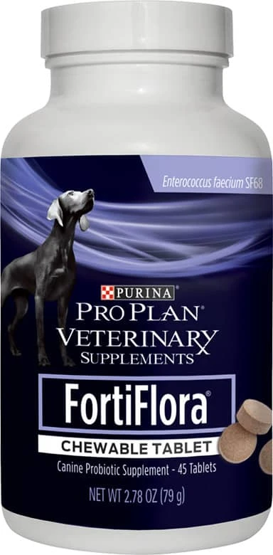 Purina Pro Plan Veterinary Diets FortiFlora Chewable Tablet Supplements contain a safe and effective strain of beneficial bacteria proven to promote normal intestinal microflora. From the makers of the #1 probiotic supplement recommended by veterinarians. The science behind our therapeutic products represents a collaboration between Purina nutritionists, researchers and veterinarians.