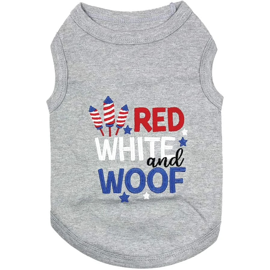 This “Red, White & WOOF” dog t-shirt promotes silly puns while offering quality fashion for your pet. The perfect way to share your support of the USA. Manufactured from 100% cotton, this adorable tee will ensure your pup feel comfortable at all times. Will fit numerous types of breeds, from tiny tea cup to Standard Poodle and dogs of up to 50 lbs.