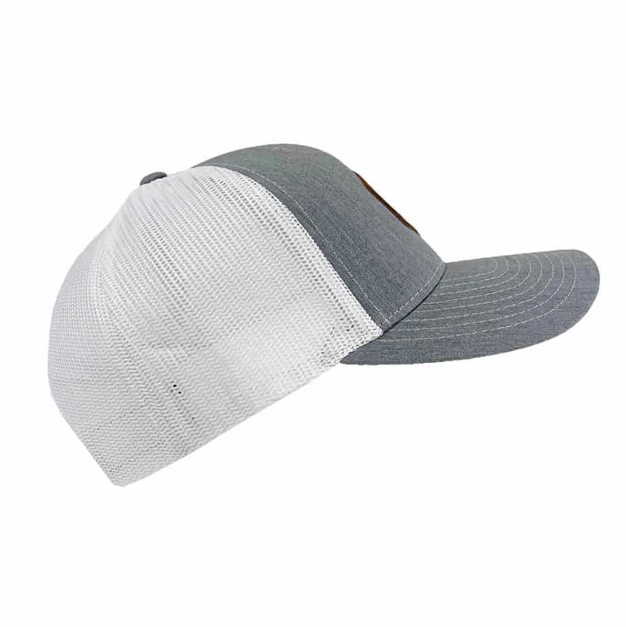This R112 is one of the most popular Richardson caps and features cotton twill front panels and a pre-curved visor with mesh back panels. This hat from Richardson exudes that classic trucker hat style topped off by an adjustable plastic snap backstop. Features a leather patch with a custom UPCO branded design.
