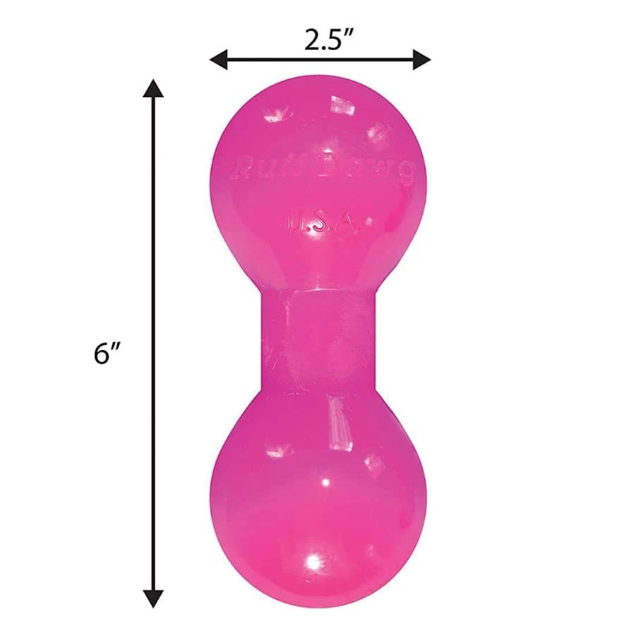 Heavy duty solid rubber Big Dawg is barbell shaped and comes in 2 sizes and an assortment of bright neon colors. These toys float, bounce and take serious abuse during heavy play, but stay gentle on teeth and gums, so the retrieving can go on and on!