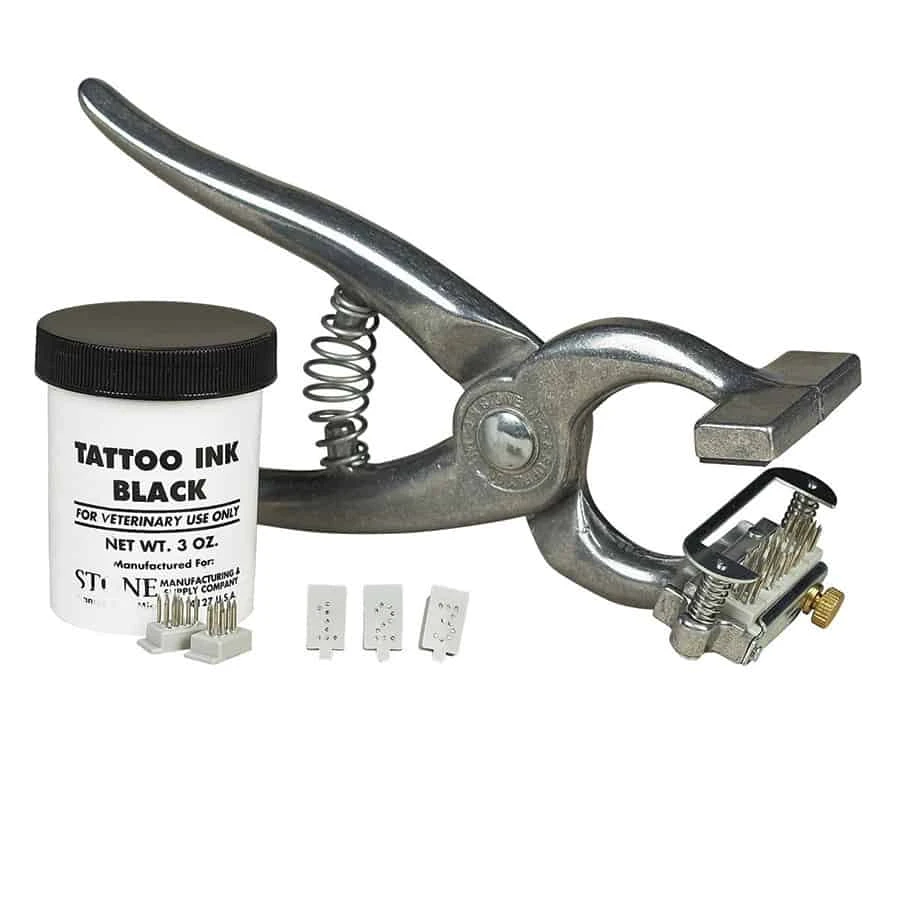 Lightweight aluminum pliers holds up to 5 digits. Fits in groves, cannot be placed upside down. Each digit is 5/16″ high, with quick release the digits are removed quickly from the ear. Simple to use.