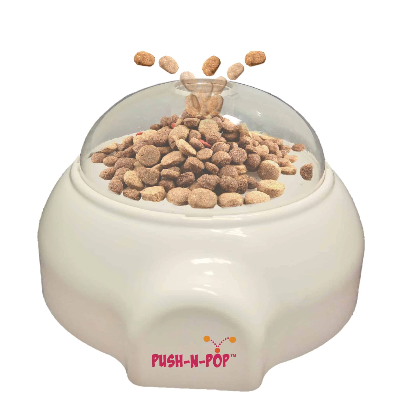 Push’ N Pop Pop promotes active and healthy feeding. Fill with your pet’s favorite dry food or treats and watch the fun! As your pet nudges and rolls Push’N Pop treats pop out with every push!