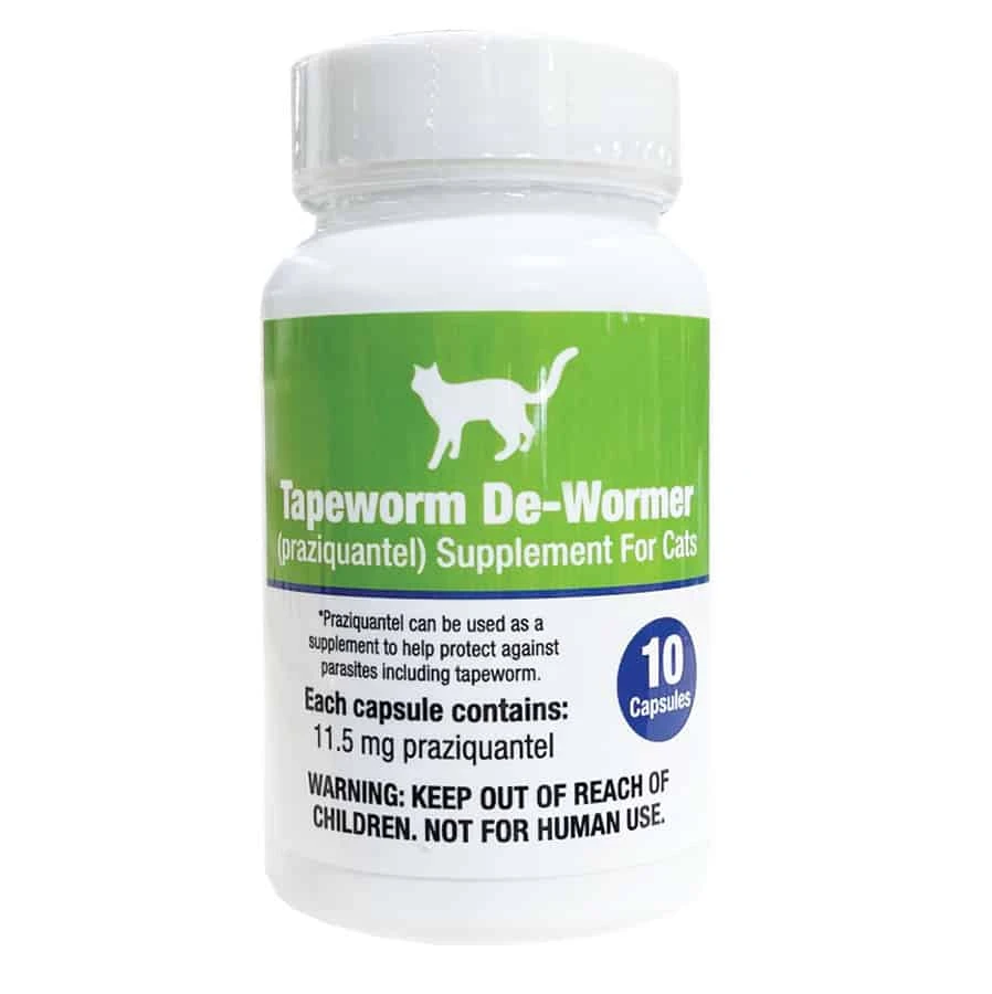 Tapeworm De-Wormer capsules for cats. Praziquantel is for the treatment and removal of tapeworms in cats 6 weeks and older.