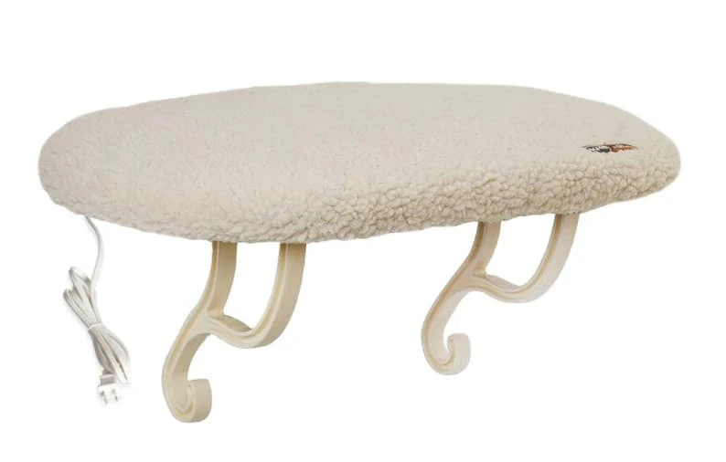 Advanced engineering for strength and ease of assembly, with an attractive oval design. Its dual thermostat heating unit is buried deep within super soft orthopedic foam and is removable for year round comfort. The heater is pre-set to keep the sleeping surface 12° to 15° above ambient air temperature and warms to your kitties natural body temperature when they lie on it. No tools are necessary for installation when using the provided hook and loop self-adhesive fasteners. Screws also included for a more permanent attachment. One year limited warranty.