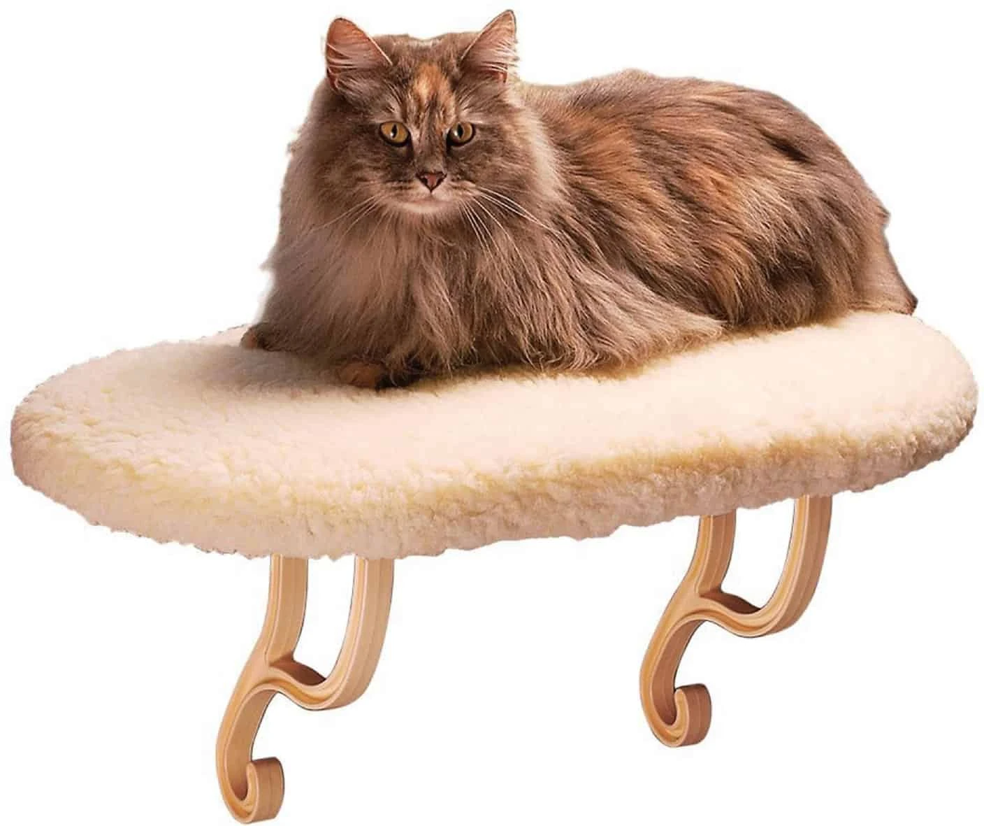 Kitty can watch the world go by in perfect comfort. Thick, oval shaped orthopedic foam pad. Soft, machine washable fleece cover. Decorative brackets adjust to any window sill. No tools needed.