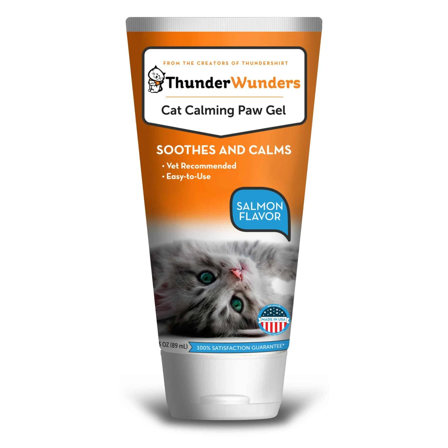 - Simply apply 1 inch of ThunderWunders Cat Calming Paw gel to the top of your cat’s paw, and they will begin cleaning themselves, and benefit from the calming ingredients of the gel.