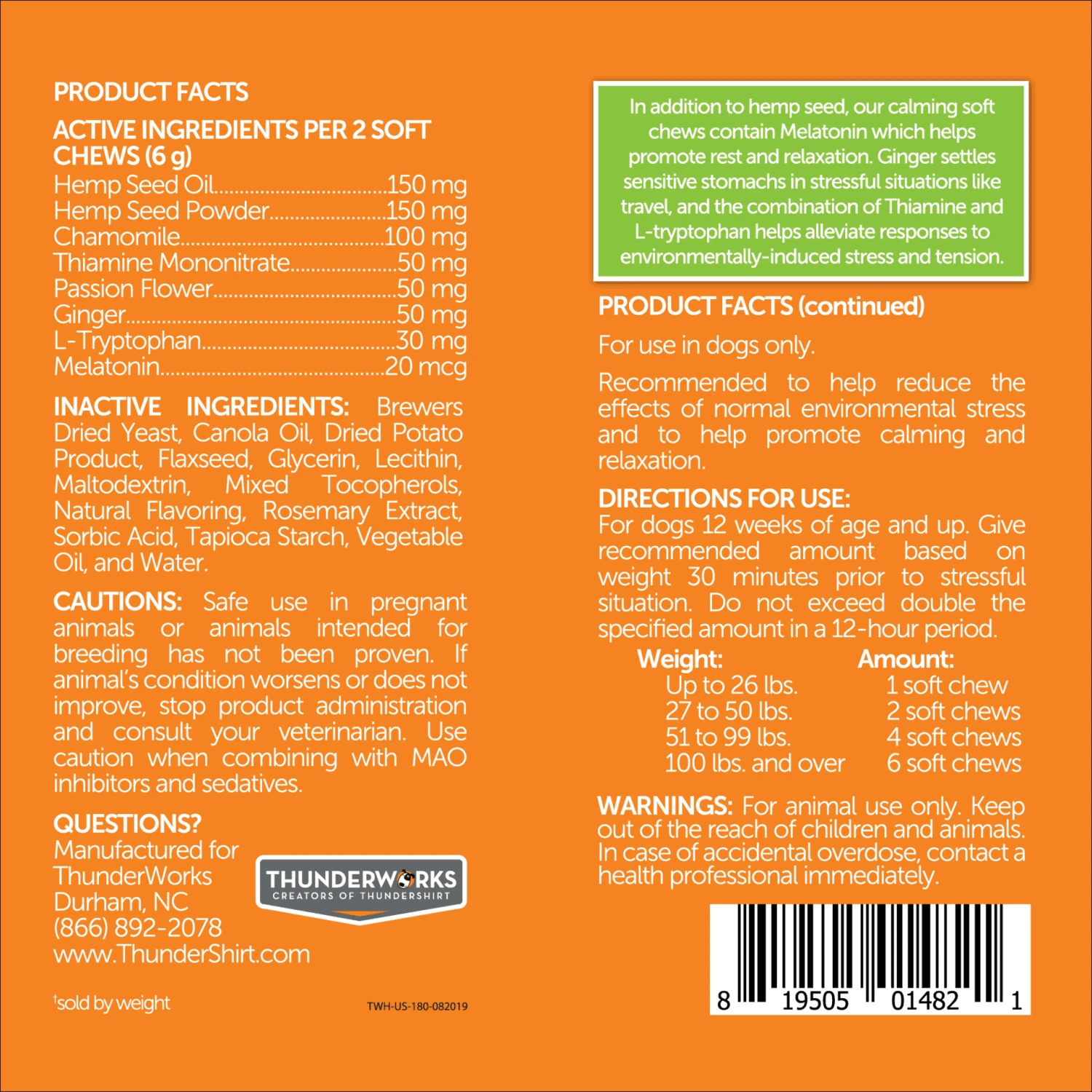 If possible, give your dog the recommended dose of ThunderWunders ~30 minutes before the stressful event (a thunderstorm is coming, fireworks will start, you are going to get in the car and go to the vet, etc) in order to give the ThunderWunders time to kick in!