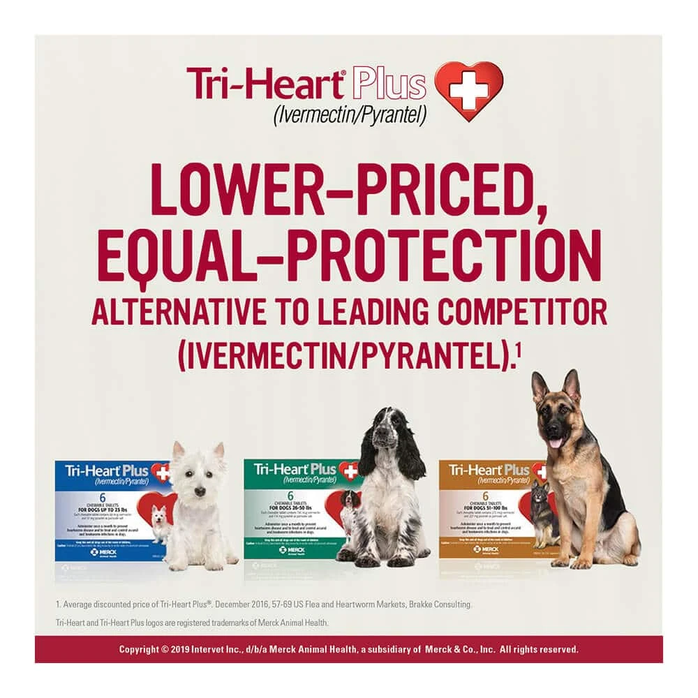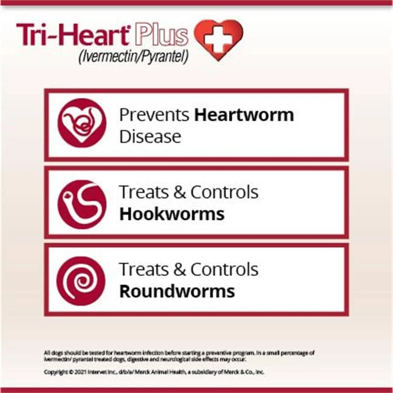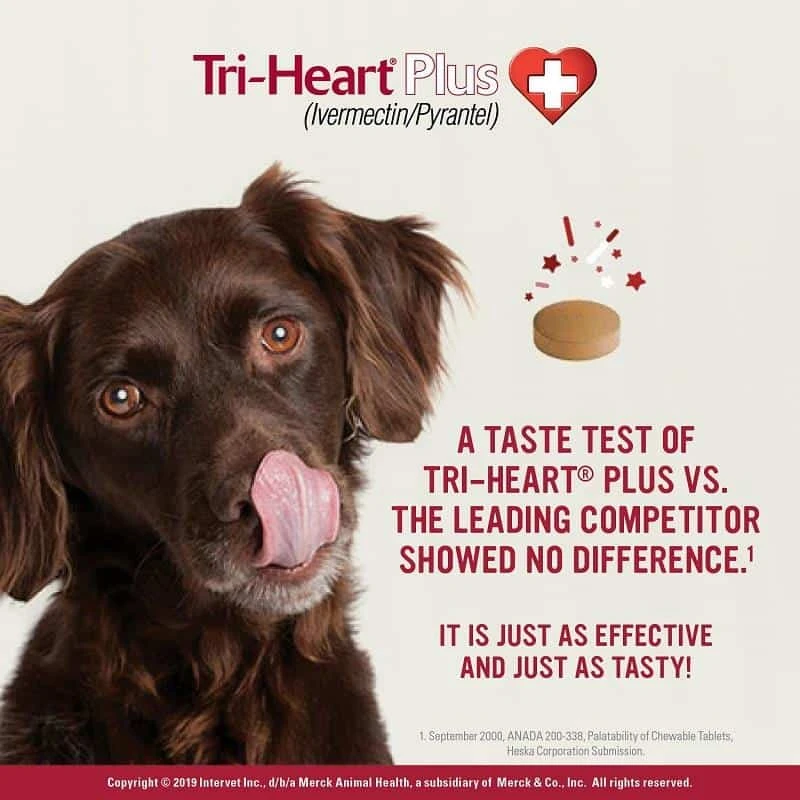 Tri-Heart Plus (ivermectin/pyrantel) is a proven, cost-effective and easy-to-administer chewable tablet that helps keep your dog free of heartworm and other dangerous parasites.1